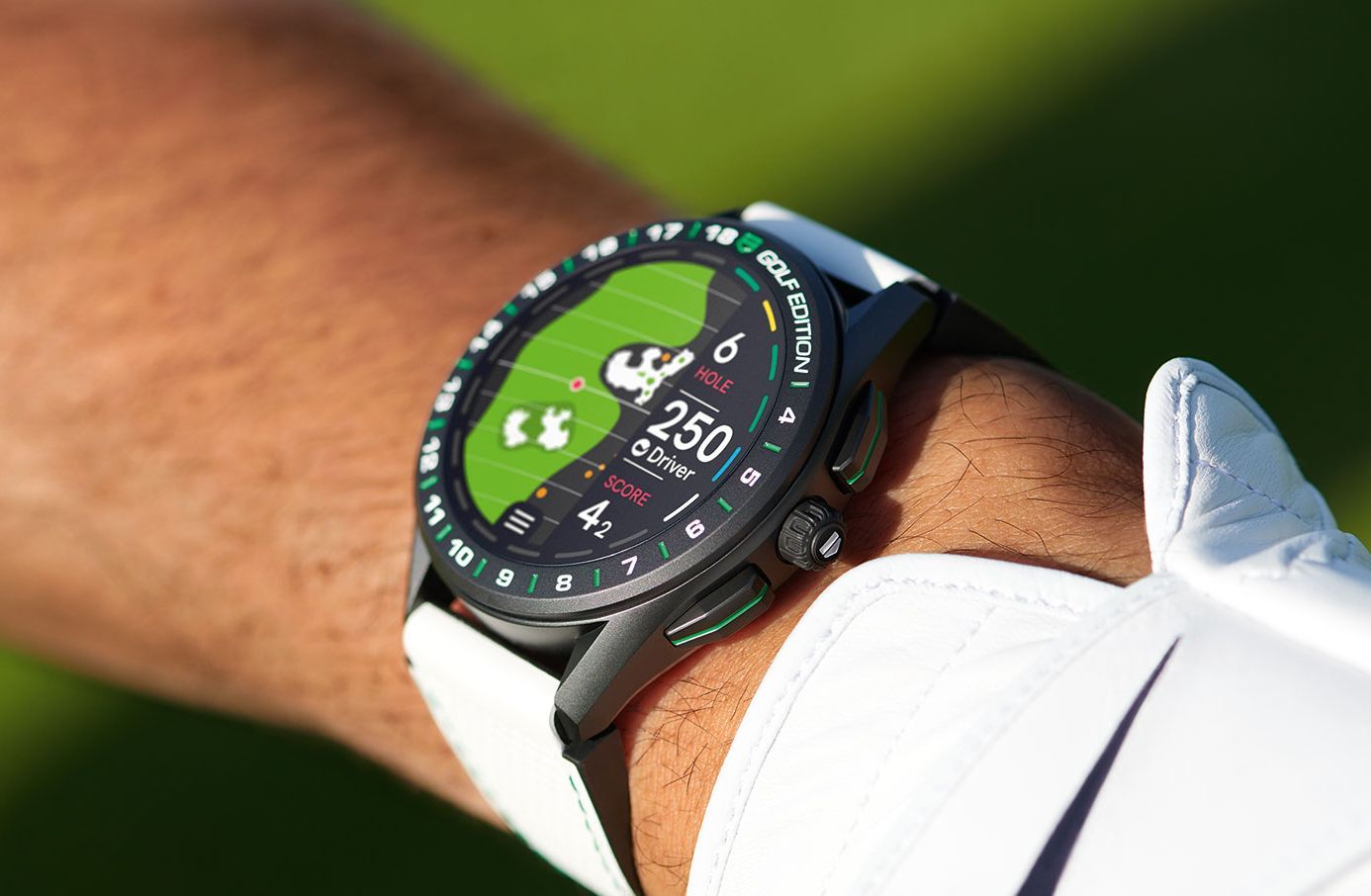 Профессиональные часы TAG Heuer Connected Golf Edition SBG8A82.EB0206 для гольфа позволяют регистрировать удары и попадания, отслеживать расстояние до следующего грина, а также выбирать удобный клуб и маршрут к нему. Эти стильные часы с функцией GPS и титановым корпусом с черным DLC-покрытием станут вашим надежным помощником на более чем 39 000 полей для гольфа по всему миру. TAG Heuer Connected Golf Edition SBG8A82.EB0206, электронный механизм с высокой точностью. Сапфировое стекло устойчивое к появлению царапин, обладающее высокой прозрачностью. Класс водозащиты: 50 метров, позволит защитить корпус от случайных брызг или капель дождя. Корпус часов изготовлен из титана, цвета.