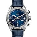 Роскошная версия шикарных TAG Heuer Carrera Chronograph CBS2214.FC6567 с бриллиантами. Престижные часы TAG Heuer Carrera сочетают в себе производительность и поразительную роскошь, создавая воодушевляющий и непринужденный элегантный образ. Часы оснащены мануфактурным механизмом TAG Heuer TH20-00. На матовом и полированном корпусе из стали можно увидеть сапфировое стеклоСапфировое стеклоПрочный и надёжный материал из кристалла сапфира синтетического происхождения, характеризующийся особой твёрдостью и устойчивостью к царапинам и повреждениям.. Элегантный циферблат дополняют индексы из 11 бриллиантов и роскошный безельБезельВнешний ободок, закрепляющий стекло. В спортивных часах так называется поворотное кольцо с делениями на циферблате, выполняет роль таймера – замеряет отрезки времени на шкале. Неподвижный безель – элемент декора. Однонаправленно вращающийся безель на дайверских часах позволяет фиксировать моменты погружения и выныривания на поверхность. из полированной стали с 72 бриллиантами. Ремень с раскладным замкомРаскладной замокДанный вариант застежки используется только на часах с металлическим браслетом. Отличительная особенность такого крепления в том, что длина браслета становится универсальной и вы можете самостоятельно отрегулировать нужный вам размер – застежка просто двигается по браслету часов.. Часы с люминесцентным покрытиемЛюминесцентное покрытиеПозволяет считывать показания времени в темноте. Производители наносят на стрелки, часовые индексы, безель или поверхность циферблата светонакопительный состав, дающий холодное свечение. с хронографом ХронографФункция позволяет измерять отрезки времени с особой точностью: часы, минуты, секунды. Верным признаком хронографа является наличие на циферблате 3 дополнительных окошек-счётчиков. и секундомеромСекундомерСекундоме́р — прибор, способный измерять интервалы времени с точностью до долей секунды..