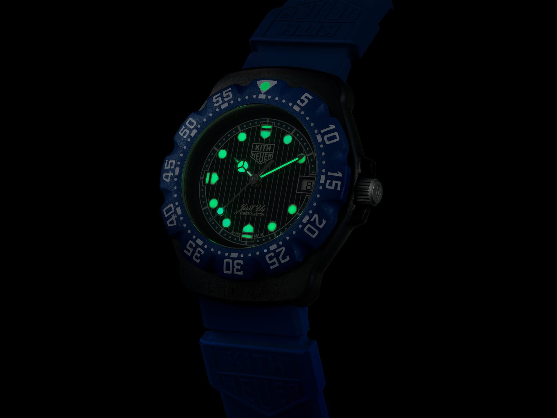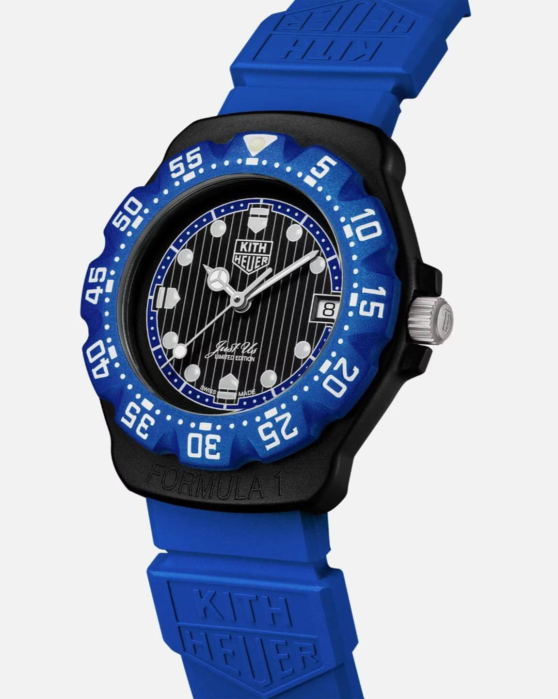 Часы TAG Heuer Formula 1 | Kith, выпущенные ограниченным тиражом в 825 экземпляров, воплощают в себе оригинальный дизайн TAG Heuer Formula 1 Series 1 образца 1986 года в современной интерпретации.