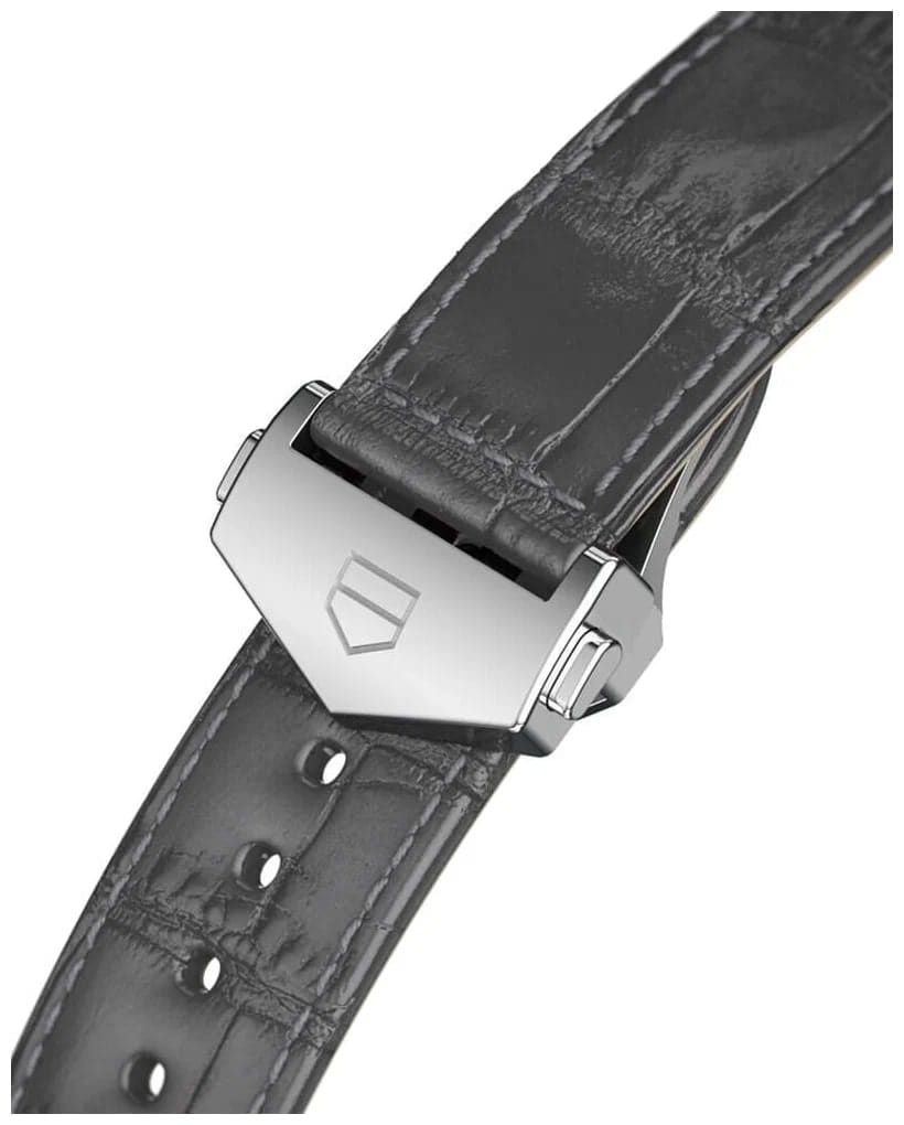 Швейцарские наручные часы с функцией индикации заряда TAG Heuer Carrera Lady WBK1313.FC8260, кварцевый механизм с высокой точностью. Сапфировое стеклоСапфировое стеклоПрочный и надёжный материал из кристалла сапфира синтетического происхождения, характеризующийся особой твёрдостью и устойчивостью к царапинам и повреждениям. выпуклое с двусторонним антибликовым покрытием устойчивое к появлению царапин, обладающее высокой прозрачностью. Класс водозащиты: 100 метров, позволит плавать, нырять и заниматься другими водными видами спорта. Корпус часов изготовлен из стали. Кожаный ремешок с раскладной застёжкойРаскладная застёжкаТакой тип застёжки используется только на браслетах из металла. Она никогда не раскрывается полностью, происходит разделение на 2 и более частей. Раскладывающая застёжка снизит вероятность потери часов к минимуму.. Застежка с системой блокировки. Окошко даты находится в положении 3 часа. Накладные индексы.