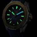 Механический механизм (автоматический калибр) с высокой точностью. Сапфировое стеклоСапфировое стеклоПрочный и надёжный материал из кристалла сапфира синтетического происхождения, характеризующийся особой твёрдостью и устойчивостью к царапинам и повреждениям. устойчивое к появлению царапин, обладающее высокой прозрачностью. Стрелки с люминесцентным покрытиемЛюминесцентное покрытиеПозволяет считывать показания времени в темноте. Производители наносят на стрелки, часовые индексы, безель или поверхность циферблата светонакопительный состав, дающий холодное свечение.. Класс водозащиты: 200 метров, позволит плавать, нырять и заниматься другими водными видами спорта. Корпус часов изготовлен из нержавеющей стали. Каучуковый ремешок с раскладной застёжкойРаскладная застёжкаТакой тип застёжки используется только на браслетах из металла. Она никогда не раскрывается полностью, происходит разделение на 2 и более частей. Раскладывающая застёжка снизит вероятность потери часов к минимуму..