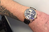Мужские наручные часы-хронографХронографФункция позволяет измерять отрезки времени с особой точностью: часы, минуты, секунды. Верным признаком хронографа является наличие на циферблате 3 дополнительных окошек-счётчиков. из коллекции Chrono XL Classic одновременно отражают в себе классический и спортивный стиль, они будут хорошо сочетаться с любой одеждой. Часы настоящего швейцарского качества дополнены стильным ремешком, сделанным из натуральной коровьей кожи с тиснением под кожу крокодила. Большой диаметр корпуса (45 мм) солидно смотрится на запястье. Аксессуар оснащён кварцевым механизмом ETA G10.212 с высокой точностью хода. Сапфировое стеклоСапфировое стеклоПрочный и надёжный материал из кристалла сапфира синтетического происхождения, характеризующийся особой твёрдостью и устойчивостью к царапинам и повреждениям.. PVDPVDУльтратонкое покрытие наносится в технике вакуумного напыления, сочетает в себе нитрид титана особой прочности со слоем золота или оксида хрома. Несёт в себе декоративную или защитную функцию.-покрытие корпуса в золотом цвете. СекундомерСекундомерСекундоме́р — прибор, способный измерять интервалы времени с точностью до долей секунды., дата. Габариты: 45 x 45 x 11 мм. Производство и сборка: Швейцария.