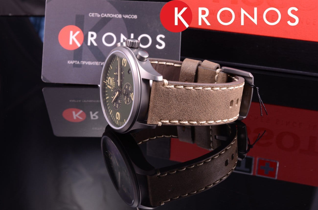 Трендовый аксессуар в спортивном стиле подойдёт для успешного и уверенного в себе молодого человека, придерживающегося активного образа жизни. Часы обладают увеличенным диаметром корпуса (45 мм), часовые индексы и цифры отлично выделяются на тёмно-зелёном циферблате. Кварцевый высокоточный механизм ETA G10.212. Сапфировое стекло. Люминесцентная подсветка. Водонепроницаемость при давлении до 10 бар. Габариты: 45 x 45 x 11 мм.