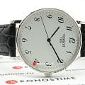 Часы отличаются высоким швейцарским качеством, они оснащены кварцевым механизмом ETA 902.101. Чёрный ремешок из натуральной кожи с тиснением под кожу крокодила отлично гармонирует с белым циферблатом. Корпус из хирургической стали 316L с антикоррозионными свойствами. Стекло из сапфира препятствует появлению царапин на поверхности. Водонепроницаемость при давлении 3 бар. Габариты: 38 x 38 x 6,5 мм.