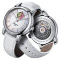 Аксессуар может стать главной особенностью вашего образа. Оригинальная модель имеет секрет - привлекательный цветочек на циферблате каждый день меняет цвет, что может быть настроено и самостоятельно. Лаконичный циферблат имеет вставку из перламутра, это добавляет шарма и очарования. Наручные часы оснащены швейцарским автоматическим механизмом ETA Powermatic 80Powermatic 80Эксклюзивный калибр от швейцарской компании ETA с увеличенным запасом хода до 80 часов за счёт удлинённой заводной пружины. Характеризуется улучшенной системой спуска со сниженным трением., сохраняющим запас хода 80 часов. Скелетонизированная задняя крышка. Стекло из сапфира. Кожаный ремешок с цветочным рисунком. . Габариты: 35 x 35 x 9,35 мм.