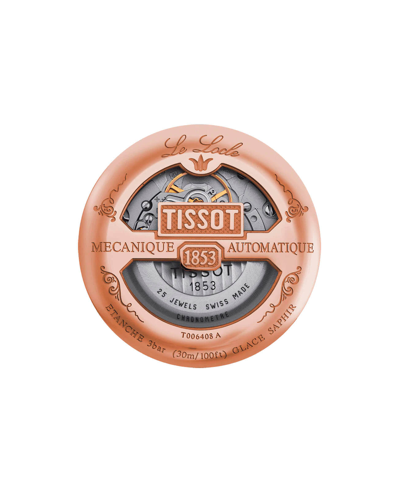 Le Locle — это знаковая коллекция швейцарского бренда Tissot! Эта новая модель с серебряным циферблатом Clous de Paris и sunray оснащена сертифицированным COSC автоматическим калибром, который едва виден через гравированную заднюю крышку. Эта модель воплощает в себе вечную элегантность, унаследованную от часовых традиций. Кожаный ремешок на стандартной застёжке. Окошко даты находится в положении 3 часа. БезельБезельВнешний ободок, закрепляющий стекло. В спортивных часах так называется поворотное кольцо с делениями на циферблате, выполняет роль таймера – замеряет отрезки времени на шкале. Неподвижный безель – элемент декора. Однонаправленно вращающийся безель на дайверских часах позволяет фиксировать моменты погружения и выныривания на поверхность. с PVD-покрытиемPVDУльтратонкое покрытие наносится в технике вакуумного напыления, сочетает в себе нитрид титана особой прочности со слоем золота или оксида хрома. Несёт в себе декоративную или защитную функцию.. Стальной корпус защищенный сапфировым стекломСапфировое стеклоПрочный и надёжный материал из кристалла сапфира синтетического происхождения, характеризующийся особой твёрдостью и устойчивостью к царапинам и повреждениям..