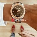Стальной корпус имеет износоустойчивое PVD-покрытиеPVDУльтратонкое покрытие наносится в технике вакуумного напыления, сочетает в себе нитрид титана особой прочности со слоем золота или оксида хрома. Несёт в себе декоративную или защитную функцию. цвета "розовое золото", оттенок использован также при оформлении стрелок и часовых меток. Тут идеально всё: оригинальное двухцветное исполнение, лаконичный антрацитовый циферблат, отображение времени с высокой точностью. Кварцевый калибр ETA 955.412 с 7 камнями. Сапфировое стекло, устойчивое к царапинам и отметинам. Водонепроницаемость. Индикация даты. Габариты: 36 x 36 x 9 мм.
