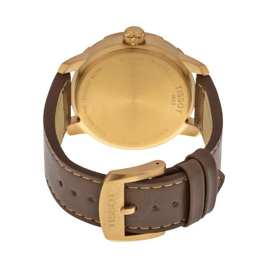 TISSOT T0954103603700 T-Sport Quickster Quartz - мужские кварцевые наручные часы Корпус этих часов среднего размера (40 мм) и выполнен из нержавеющей стали L316 с PVD-покрытием цвета розового золота Модель TISSOT T0954103603700 T-Sport Quickster Quartz имеет устойчивое к царапинам сапфировое стекло, ремешок из натуральной кожи коричневого цвета, белый циферблат Калибр механизма: ETA F06111 Класс водозащиты: 100 м / 10 АТМ (разрешается плавание и ныряние без акваланга) Дополнительные функции и особенности: отображение числа Полная заводская комплектация TISSOT: оригинальные часы, фирменная коробка, инструкция, сервисная книжка, роман о часовой фабрике, миникаталог, замшевый фирменный чехол черного цвета для хранения и/или переноски часов, кассовый и товарный чеки Международная гарантия 2 года Производство и сборка: Швейцария
