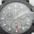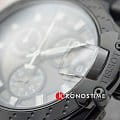 БезельБезельВнешний ободок, закрепляющий стекло. В спортивных часах так называется поворотное кольцо с делениями на циферблате, выполняет роль таймера – замеряет отрезки времени на шкале. Неподвижный безель – элемент декора. Однонаправленно вращающийся безель на дайверских часах позволяет фиксировать моменты погружения и выныривания на поверхность. в оригинальном исполнении отлично вписывается в спортивный дизайн модели. Силиконовый ремешок идеально сидит на запястье, обеспечивая комфортное ношение. Материал не портится от воды, неприхотлив в уходе. Кварцевый механизм ETA G10.212. Корпус из хирургической стали с PVD-покрытиемPVDУльтратонкое покрытие наносится в технике вакуумного напыления, сочетает в себе нитрид титана особой прочности со слоем золота или оксида хрома. Несёт в себе декоративную или защитную функцию.. Водостойкость при давлении 10 бар на глубине 100 метров. Люминесцентная подсветкаЛюминесцентное покрытиеПозволяет считывать показания времени в темноте. Производители наносят на стрелки, часовые индексы, безель или поверхность циферблата светонакопительный состав, дающий холодное свечение.. Секундомер, апертура даты, тахиметрТахиметрРазмеченная шкала, располагается на ободке или безеле часов. Тахиметр позволяет рассчитать скорость на определённом участке пути, расстояние измеряется в километрах или милях.. Габариты: 47,6 x 43 x 12,3 мм.