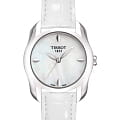 Наручные часы будут идеально смотреться в любой ситуации, навсегда оставаясь модным и актуальным аксессуаром. Циферблат из белого перламутра дополнен изящными стрелками, по форме напоминающие лепестки. Кварцевый механизм ETA F04.111 поддерживает высокую точность хода. Стекло из сапфира. Ремешок белого цвета из натуральной кожи. Функция EOLEOLПредставляет собой систему, уведомляющую владельца часов о необходимости замены элемента питания. За 2 недели до полного разряда батарейки секундная стрелка перестаёт ходить чётко и начинает перепрыгивать на 3-4 деления.. Водостойкость 30 метров. Габариты: 28,2 x 28,2 x 8 мм.
