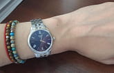 Синий циферблат, дополненный винтажными римскими цифрами, идеально смотрится в сочетании с серебристым отливом корпуса (самый тонкий из всех аксессуаров Tissot - толщина 5,5 мм) из нержавеющей стали 316L. Лаконичное оформление. Кварцевый высокоточный механизм ETA E61.031. Сапфировое стекло невозможно поцарапать. Водостойкость при давлении 3 бар. . Габариты: 31 x 31 x 5,5 мм.