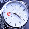 Серебристо-белая модель с оригинальным узором циферблата имеет отдельный секундный счётчик миниатюрных размеров, а также отдельное окошко 24-х часовой индикации времени GMTGMTОтображение времени второго часового пояса.Такая функция особенно актуальна для путешественников и бизнесменов,которые общаются с людьми из разных стран,теперь вы всегда будете знать,какой час у вашего партнёра или близкого человека.. Кварцевый калибр ETA G10.961 заключён в прочный корпус из нержавеющей стали, защищающий от повреждений и ударов. Сапфировое стекло. Водонепроницаемость до 3 бар. Индикация даты. Габариты: 42 x 42 x 11,07 мм.