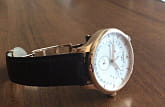 Износоустойчивое PVD-покрытиеPVDУльтратонкое покрытие наносится в технике вакуумного напыления, сочетает в себе нитрид титана особой прочности со слоем золота или оксида хрома. Несёт в себе декоративную или защитную функцию. цвета розовое золото не только украшает корпус, но и дополнительно защищает его от мелких царапин. Оригинальный оттенок гармонирует с белым циферблатом, стрелки и часовые метки выполнены в тон корпусу. Наручные часы комплектуются кварцевым калибром ETA G15.561 с высокой точностью хода. Надёжное сапфировое стекло. Ремешок из натуральной кожи с имитацией рисунка кожи крокодила. Опция вечного календаряВечный календарьКлассическое часовое усложнение, представляющее собой календарь, рассчитанный на несколько лет вперёд (стандартно – до 2099 года). Определяет текущую дату, день недели, месяц.. Габариты: 42 x 42 x 11,07 мм.