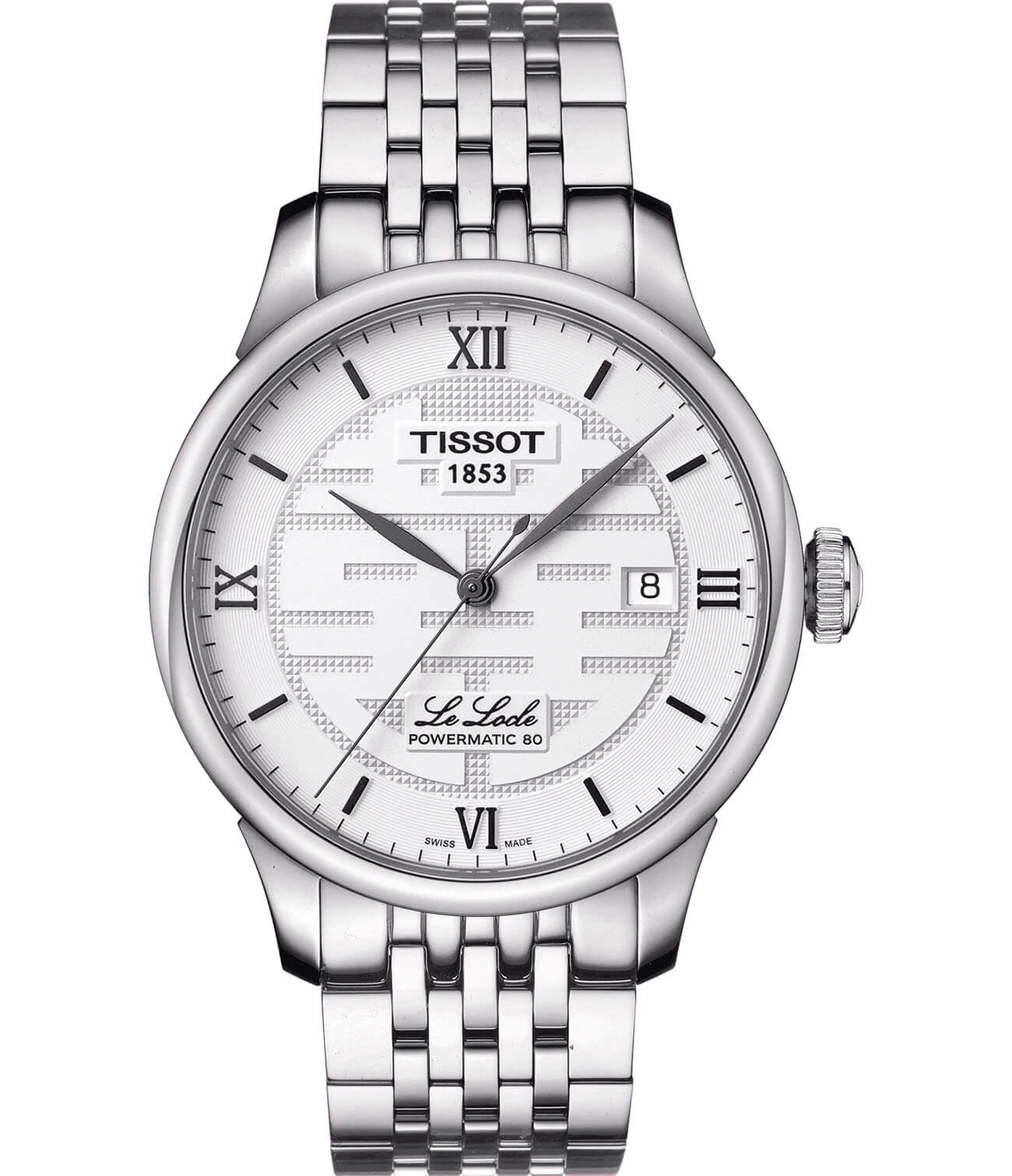 Наручные часы отличаются оригинальным исполнением. Белый циферблат дополнен эксклюзивным узором, что позволяет использовать часы для завершения индивидуального образа. Оттенок винтажа появляется за счёт римских цифр. Внутри корпуса из нержавеющей стали находится автоматический калибр ETA Powermatic 80Powermatic 80Эксклюзивный калибр от швейцарской компании ETA с увеличенным запасом хода до 80 часов за счёт удлинённой заводной пружины. Характеризуется улучшенной системой спуска со сниженным трением., сохраняющий резерв хода до 80 часов. Скелетонизированная задняя крышка с гравировкой. Стекло из сапфира противостоит появлению царапин. . Апертура даты. Габариты: 39,3 x 39,3 x 9,8 мм.