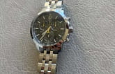 Эффектное чёрно-серебристое исполнение модели делает её идеальным вариантом для дополнения любого образа. Спортивный хронографХронографФункция позволяет измерять отрезки времени с особой точностью: часы, минуты, секунды. Верным признаком хронографа является наличие на циферблате 3 дополнительных окошек-счётчиков. обладает водонепроницаемостью при давлении 20 бар на глубине 200 метров, часы подходят для плавания и дайвинга. Кварцевый калибр ETA G10.211. Хирургическая сталь 316 L. Завинчивающаяся заводная головка и задняя крышка. Секундомер, тахиметрТахиметрРазмеченная шкала, располагается на ободке или безеле часов. Тахиметр позволяет рассчитать скорость на определённом участке пути, расстояние измеряется в километрах или милях., апертура даты. Габариты: 43 x 42 x 12 мм.