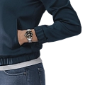 Модель T120.210.21.051.00 — женский швейцарский дайвер с корпусом 36 мм из 316L нержавеющей стали с золотистым PVD-покрытиемPVDУльтратонкое покрытие наносится в технике вакуумного напыления, сочетает в себе нитрид титана особой прочности со слоем золота или оксида хрома. Несёт в себе декоративную или защитную функцию. и браслетом из того же материала. Надёжный швейцарский кварцевый механизм гарантирует точность, а водонепроницаемость до 30 bar (300 м) позволяет погружаться без опасений. Чёрный циферблат защищён сапфировым стекломСапфировое стеклоПрочный и надёжный материал из кристалла сапфира синтетического происхождения, характеризующийся особой твёрдостью и устойчивостью к царапинам и повреждениям. с антибликовым покрытиемАнтибликовое покрытиеСлой оксида металла в 0,13-0,3 микрон, благодаря которому стекло часов не бликует и не отражает свет. Антибликовое покрытие уменьшает отражение света в 10 раз, обеспечивая отличную читаемость показателей циферблата.. Удобная раскладная застёжкаРаскладная застёжкаТакой тип застёжки используется только на браслетах из металла. Она никогда не раскрывается полностью, происходит разделение на 2 и более частей. Раскладывающая застёжка снизит вероятность потери часов к минимуму. и uni-directional вращающийся безель подчёркивают профессиональный характер модели.