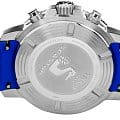 Наручные часы отличаются спортивным дизайном, прослеживается дайверская тематика, чему способствует и водонепроницаемость при давлении 30 бар на глубине 300 метров. Кварцевый механизм ETA G10.212. Керамический безельБезельВнешний ободок, закрепляющий стекло. В спортивных часах так называется поворотное кольцо с делениями на циферблате, выполняет роль таймера – замеряет отрезки времени на шкале. Неподвижный безель – элемент декора. Однонаправленно вращающийся безель на дайверских часах позволяет фиксировать моменты погружения и выныривания на поверхность. Сапфировое стекло с антибликовым покрытием. Завинчивающаяся заводная головка и задняя крышка. Люминесцентная подсветкаЛюминесцентное покрытиеПозволяет считывать показания времени в темноте. Производители наносят на стрелки, часовые индексы, безель или поверхность циферблата светонакопительный состав, дающий холодное свечение.. Черно-синий тканевый ремешок. Секундомер, хронографХронографФункция позволяет измерять отрезки времени с особой точностью: часы, минуты, секунды. Верным признаком хронографа является наличие на циферблате 3 дополнительных окошек-счётчиков., календарь. Габариты: 45 x 45 x 12,8 мм.