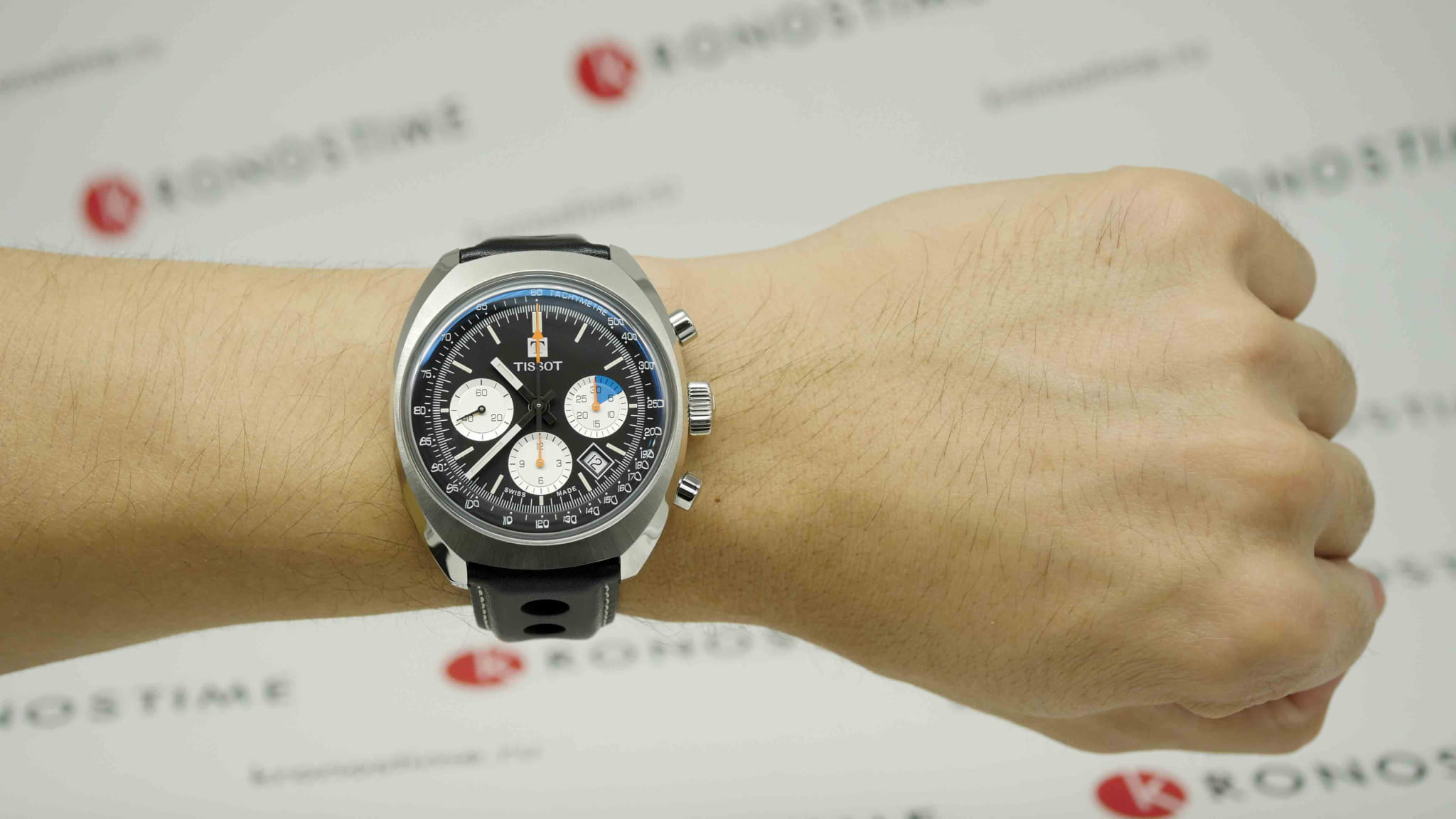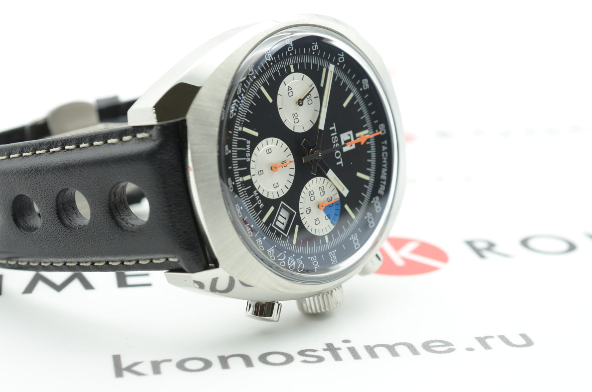 Наручные часы с оранжевыми деталями возрождают аксессуар Tissot Navigator 1973 года, спортивный хронографХронографФункция позволяет измерять отрезки времени с особой точностью: часы, минуты, секунды. Верным признаком хронографа является наличие на циферблате 3 дополнительных окошек-счётчиков. символизирует историческое партнёрство швейцарского бренда и автогоночной команды Kessel Classics. Модель выполнена в винтажном стиле, практически весь корпус матовый, исключение составляет передняя скошенная полированная поверхность. Часы оснащаются престижным автоматическим механизмом Valjoux 7753 с запасом хода 48 часов и отделкой ротора женевские волны. Прозрачная задняя крышка. Чёрный ремешок с перфорацией из натуральной кожи. . Стекло из сапфира с антибликовой поверхностью. Секундомер, отображение числа. Габариты: 46,6 x 43 x 14,8 мм.