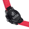 Аксессуар позволит грамотно дополнить образ, гармония чёрно-белой палитры никогда не потеряет актуальности. Наручные часы позволят всегда находиться в центре внимания. Массивный циферблат с крупной индикацией времени, симметричным расположением окошек – важная деталь для делового мужчины, привыкшего всё делать вовремя. Ремешок из тисненой натуральной кожи имеет белую прострочку, вдохновение идет от спортивных моделей. Швейцарский кварцевый механизм ETA G10.212. Сапфировое стекло. Корпус из нержавеющей стали 316L с цветным PVD-покрытиемPVDУльтратонкое покрытие наносится в технике вакуумного напыления, сочетает в себе нитрид титана особой прочности со слоем золота или оксида хрома. Несёт в себе декоративную или защитную функцию.. БезельБезельВнешний ободок, закрепляющий стекло. В спортивных часах так называется поворотное кольцо с делениями на циферблате, выполняет роль таймера – замеряет отрезки времени на шкале. Неподвижный безель – элемент декора. Однонаправленно вращающийся безель на дайверских часах позволяет фиксировать моменты погружения и выныривания на поверхность. размечен шкалой тахиметраТахиметрРазмеченная шкала, располагается на ободке или безеле часов. Тахиметр позволяет рассчитать скорость на определённом участке пути, расстояние измеряется в километрах или милях.. Водонепроницаемость до 10 бар. Люминесцентная подсветкаЛюминесцентное покрытиеПозволяет считывать показания времени в темноте. Производители наносят на стрелки, часовые индексы, безель или поверхность циферблата светонакопительный состав, дающий холодное свечение.. Секундомер, хронографХронографФункция позволяет измерять отрезки времени с особой точностью: часы, минуты, секунды. Верным признаком хронографа является наличие на циферблате 3 дополнительных окошек-счётчиков., индикация числа. Диаметр корпуса: 45,5 мм.