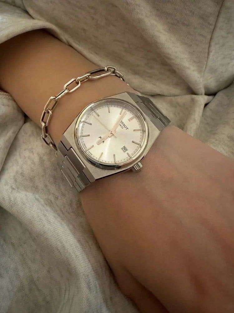Маленькие очень удобные часы, мое запястье в обхвате 17 см, обычно ношу часы 40,5 мм. Эти мелковаты, сначала хотел вернуть, но в самом деле привык за пару дней, такой размер отсылает к оригинальным Rolex Datejust Oysterquartz. Сравнивал с PRX 40 мм, не знаю какие лучше, они просто разные: 35 - под костюм и шорты, 40 - под джинсы и оверсайз, вероятно. Само качество изготовления отличное, есть микро непопадания в метки, но оно настолько мизерное, что мне как-то до этого нет дела. Сомнений в оригинальности нет.