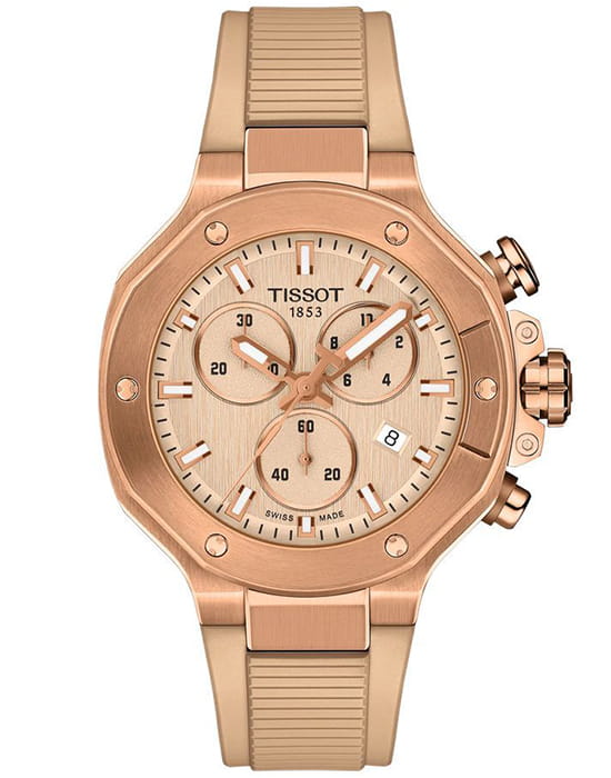 Tissot T-Race Chronograph 38mm— выразительные спортивные часы, созданные для динамичного стиля жизни. Корпус диаметром 38 мм выполнен в современном дизайне с акцентом на мощные линии с PVD-покрытиемPVDУльтратонкое покрытие наносится в технике вакуумного напыления, сочетает в себе нитрид титана особой прочности со слоем золота или оксида хрома. Несёт в себе декоративную или защитную функцию., подчеркивающие характер коллекции T-Race.
