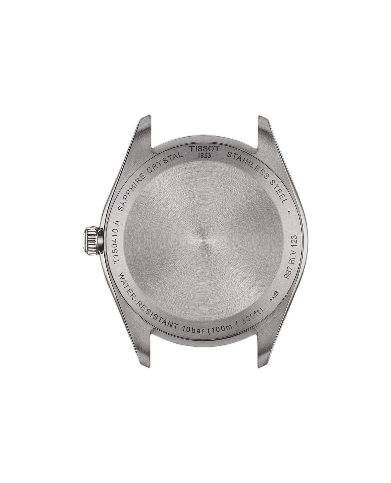 Мужские швейцарские часы Tissot PR 100 T150.410.11.051.00, кварцевый механизм с высокой точностью. Сапфировое стеклоСапфировое стеклоПрочный и надёжный материал из кристалла сапфира синтетического происхождения, характеризующийся особой твёрдостью и устойчивостью к царапинам и повреждениям. устойчивое к появлению царапин, обладающее высокой прозрачностью. Корпус часов изготовлен из нержавеющей стали. Стрелки с люминесцентным покрытиемЛюминесцентное покрытиеПозволяет считывать показания времени в темноте. Производители наносят на стрелки, часовые индексы, безель или поверхность циферблата светонакопительный состав, дающий холодное свечение.. Окошко даты в положении 3 часов. Класс водозащиты: 100 метров, позволит плавать, нырять и заниматься другими водными видами спорта. Стальной браслет на застёжке-бабочке с кнопкамиЗастёжка "бабочка"Такой вид застёжки дополняется предохранителями, помогающими избежать случайного раскрытия браслета. Обладают изящным исполнением. .