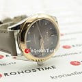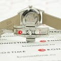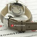, мягкий блеск идеально гармонирует с ремешком из натуральной телячьей кожи. Классический циферблат дымчатого оттенка с узором «солнечные лучи» декорирован 8 бриллиантами в 0,016 карат, заменяющими индексы. Модель оснащена уникальным автоматическим механизмом ETA Powermatic 48.111, сохраняющим запас хода на 48 часов. Калибр украшен волновыми узорами, его безупречная отделка просматривается сквозь прозрачную заднюю крышку. Сапфировое стекло препятствует образованию царапин. Сохраняется водонепроницаемость до 5 бар. На позиции 3 часов – апертура даты. Габариты: 29 x 29 x 10,4 мм.