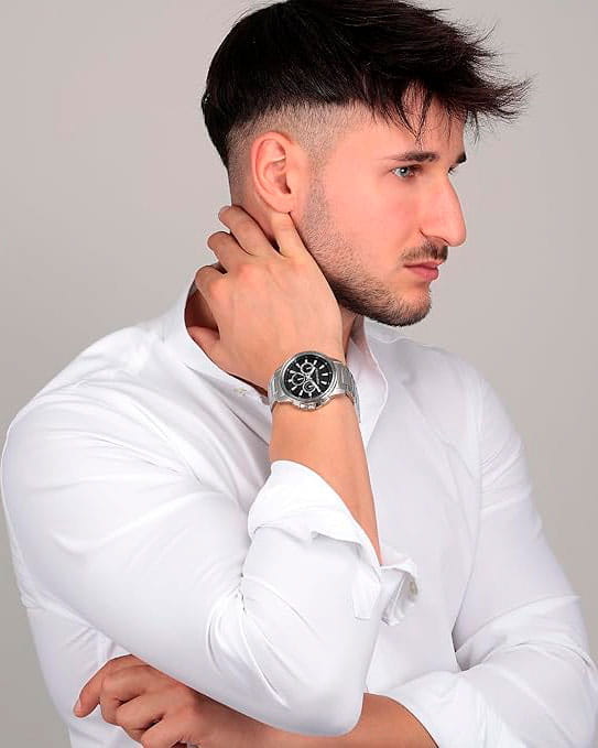 Итальянские мужские часы Trussardi T-Hawk R2453153004 - это стильный мужской аксессуар, который сочетает элегантный дизайн и практичность. Корпус выполнен из нержавеющей стали, что обеспечивает долговечность и утончённый внешний вид. Шкала тахиметраТахиметрРазмеченная шкала, располагается на ободке или безеле часов. Тахиметр позволяет рассчитать скорость на определённом участке пути, расстояние измеряется в километрах или милях. на безелеБезельВнешний ободок, закрепляющий стекло. В спортивных часах так называется поворотное кольцо с делениями на циферблате, выполняет роль таймера – замеряет отрезки времени на шкале. Неподвижный безель – элемент декора. Однонаправленно вращающийся безель на дайверских часах позволяет фиксировать моменты погружения и выныривания на поверхность.. Надежное минеральное стеклоМинеральное стеклоМинеральное стекло представляет собой искусственно выращенный минерал кварца. Такое стекло отличается особой устойчивостью к повреждениям и царапинам. Уступает по некоторым качествам сапфировому стеклу. защищает циферблат от царапин и обеспечивает долговечность. Модель оснащена кварцевым механизмом, обеспечивающим высокую точность хода. Браслет из нержавеющей стали с раскладной застёжкойРаскладная застёжкаТакой тип застёжки используется только на браслетах из металла. Она никогда не раскрывается полностью, происходит разделение на 2 и более частей. Раскладывающая застёжка снизит вероятность потери часов к минимуму. обеспечивает комфортное ношение. Водозащита 50 метров позволит защитить корпус от случайных брызг или капель дождя. Вынесенный циферблат с 24-х и 12- ти часовым указателем времени, а также вынесенный циферблат с хронографомХронографФункция позволяет измерять отрезки времени с особой точностью: часы, минуты, секунды. Верным признаком хронографа является наличие на циферблате 3 дополнительных окошек-счётчиков.. Стрелки и метки оснащены люминесцентным покрытиемЛюминесцентное покрытиеПозволяет считывать показания времени в темноте. Производители наносят на стрелки, часовые индексы, безель или поверхность циферблата светонакопительный состав, дающий холодное свечение., обеспечивающим отличную видимость даже при слабом освещении. Эта модель – отличный выбор для тех, кто ищет сочетание стиля, качества и функциональности. Часы станут не только полезным аксессуаром, но и выразительным элементом вашего имиджа. В комплекте браслет из кожи со стальными вставками.