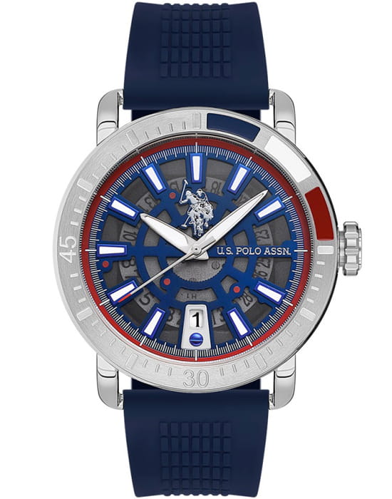 Мужские часы U.S. Polo Assn USPA1058-03, кварцевый механизм с высокой точностью. Минеральное стеклоМинеральное стеклоМинеральное стекло представляет собой искусственно выращенный минерал кварца. Такое стекло отличается особой устойчивостью к повреждениям и царапинам. Уступает по некоторым качествам сапфировому стеклу. устойчивое к появлению царапин, обладающее высокой прозрачностью. Корпус изготовлен из нержавеющей стали. Стрелки и метки с люминесцентным покрытиемЛюминесцентное покрытиеПозволяет считывать показания времени в темноте. Производители наносят на стрелки, часовые индексы, безель или поверхность циферблата светонакопительный состав, дающий холодное свечение.. Класс водозащиты: 50 метров, позволит защитить корпус от случайных брызг или капель дождя. Силиконовый ремень.