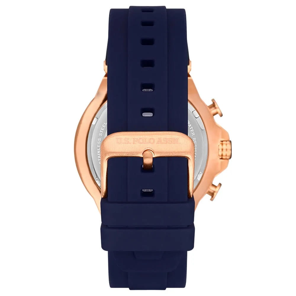 Мужские американские часы U.S. Polo Assn. Crossing USPA1076-04 обладают кварцевым механизмом с высокой точностью. Минеральное стеклоМинеральное стеклоМинеральное стекло представляет собой искусственно выращенный минерал кварца. Такое стекло отличается особой устойчивостью к повреждениям и царапинам. Уступает по некоторым качествам сапфировому стеклу. устойчивое к появлению царапин, обладающее высокой прозрачностью. Изысканный корпус изготовлен из нержавеющей стали с PVD-покрытиемPVDУльтратонкое покрытие наносится в технике вакуумного напыления, сочетает в себе нитрид титана особой прочности со слоем золота или оксида хрома. Несёт в себе декоративную или защитную функцию. цвета розового золота, диаметром 44мм. Лаконичные центральные часовая, минутная и секундная стрелки. 24-х часовой формат времени, день недели вынесены на отдельный циферблат. Шкала тахиметраТахиметрРазмеченная шкала, располагается на ободке или безеле часов. Тахиметр позволяет рассчитать скорость на определённом участке пути, расстояние измеряется в километрах или милях. на безелеБезельВнешний ободок, закрепляющий стекло. В спортивных часах так называется поворотное кольцо с делениями на циферблате, выполняет роль таймера – замеряет отрезки времени на шкале. Неподвижный безель – элемент декора. Однонаправленно вращающийся безель на дайверских часах позволяет фиксировать моменты погружения и выныривания на поверхность. с PVD-покрытиемPVDУльтратонкое покрытие наносится в технике вакуумного напыления, сочетает в себе нитрид титана особой прочности со слоем золота или оксида хрома. Несёт в себе декоративную или защитную функцию. черного цвета. Стрелки и метки с люминесцентным покрытиемЛюминесцентное покрытиеПозволяет считывать показания времени в темноте. Производители наносят на стрелки, часовые индексы, безель или поверхность циферблата светонакопительный состав, дающий холодное свечение., обеспечивающим хорошую читаемость в темноте. Класс водозащиты: 50 метров позволит защитить корпус от случайных брызг или капель дождя. Силиконовый ремень со стандартной застежкой обеспечивает комфорт и удобство в использовании, добавляя завершающий штрих к этому стильному и высокоэффективному аксессуару. Это практичный и стильный инструмент для активной повседневности, объединяющий точный механизм и удобство.