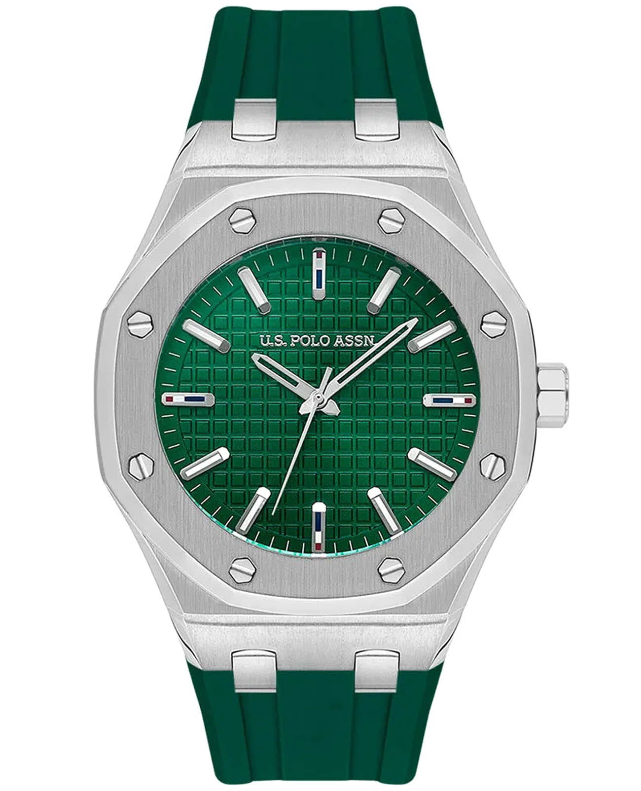 Мужские американские часы U.S. Polo Assn. Fundamental USPA1106-02 обладают кварцевым механизмом с высокой точностью. Минеральное стеклоМинеральное стеклоМинеральное стекло представляет собой искусственно выращенный минерал кварца. Такое стекло отличается особой устойчивостью к повреждениям и царапинам. Уступает по некоторым качествам сапфировому стеклу. устойчивое к появлению царапин, обладающее высокой прозрачностью. Изысканный корпус изготовлен из нержавеющей стали, диаметром 42 мм. Лаконичные центральные часовая, минутная и секундная стрелки. Метки с люминесцентным покрытиемЛюминесцентное покрытиеПозволяет считывать показания времени в темноте. Производители наносят на стрелки, часовые индексы, безель или поверхность циферблата светонакопительный состав, дающий холодное свечение., обеспечивающим хорошую читаемость в темноте. Класс водозащиты: 50 метров позволит защитить корпус от случайных брызг или капель дождя. Силиконовый ремешок на стандартной застёжке обеспечивает комфорт и удобство в использовании, добавляя завершающий штрих к этому стильному и высокоэффективному аксессуару. Это практичный и стильный инструмент для активной повседневности, объединяющий точный механизм и удобство.