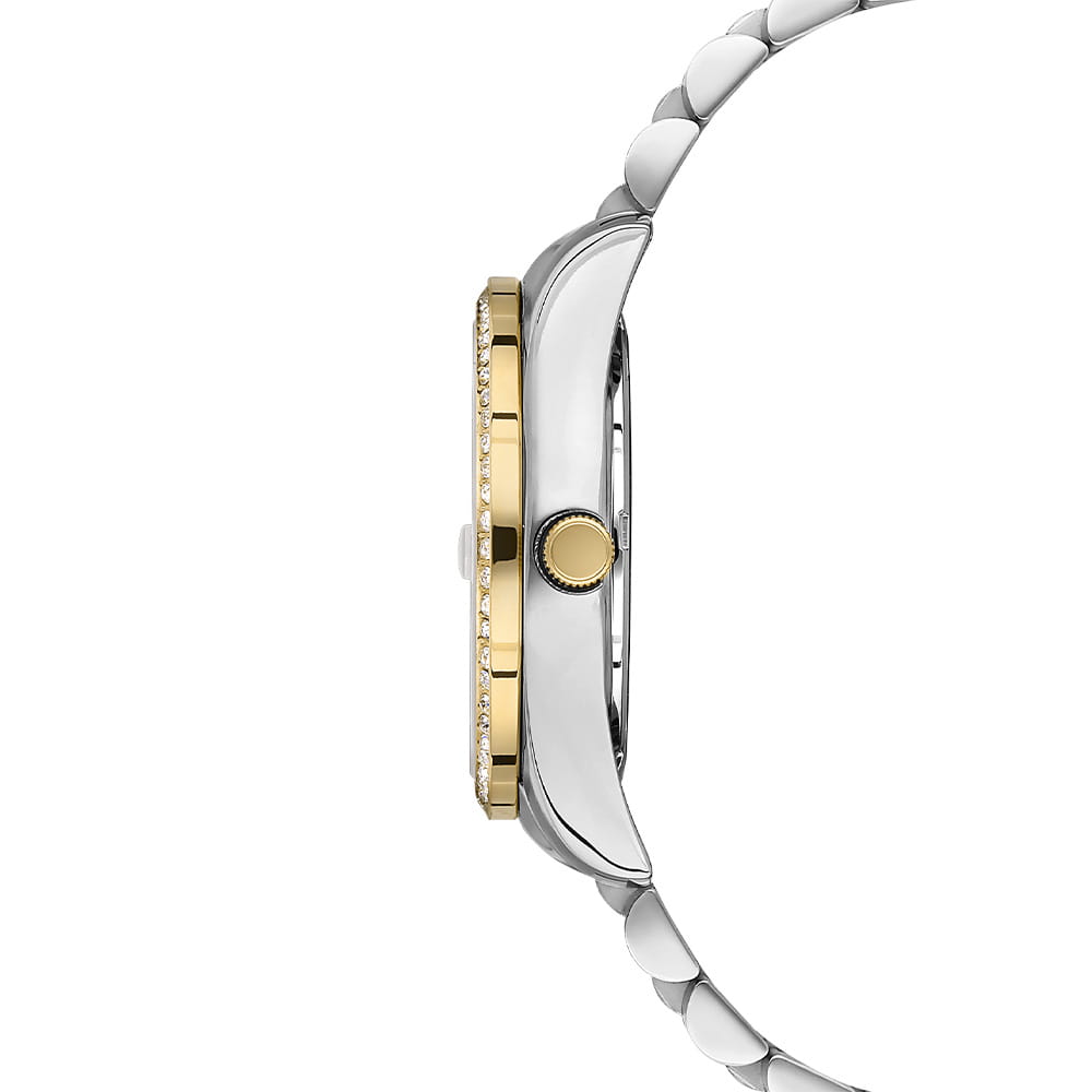 Женские часы U.S. Polo Assn. Stile USPA2054-07, кварцевый механизм с высокой точностью. Минеральное стеклоМинеральное стеклоМинеральное стекло представляет собой искусственно выращенный минерал кварца. Такое стекло отличается особой устойчивостью к повреждениям и царапинам. Уступает по некоторым качествам сапфировому стеклу. устойчивое к появлению царапин, обладающее высокой прозрачностью. Корпус изготовлен из нержавеющей стали. БезельБезельВнешний ободок, закрепляющий стекло. В спортивных часах так называется поворотное кольцо с делениями на циферблате, выполняет роль таймера – замеряет отрезки времени на шкале. Неподвижный безель – элемент декора. Однонаправленно вращающийся безель на дайверских часах позволяет фиксировать моменты погружения и выныривания на поверхность. из нержавеющей стали с IP-покрытиемIP-покрытиеМетод ионного напыления. Демонстрирует повышенную устойчивость к истиранию, окислению и химическим веществам. Под воздействием высокого давления и температуры около 1500°C молекулы металла надёжно соединяются с частицами корпуса часов. и украшен кристаллами. Окошко даты в положении 3 часов, окошко дня недели в положении 12 часов. Класс водозащиты: 50 метров, позволит защитить корпус от случайных брызг или капель дождя. Стальной браслет с частичным IP-покрытиемIP-покрытиеМетод ионного напыления. Демонстрирует повышенную устойчивость к истиранию, окислению и химическим веществам. Под воздействием высокого давления и температуры около 1500°C молекулы металла надёжно соединяются с частицами корпуса часов. на застёжке «бабочка» с кнопкамиЗастёжка "бабочка"Такой вид застёжки дополняется предохранителями, помогающими избежать случайного раскрытия браслета. Обладают изящным исполнением. .