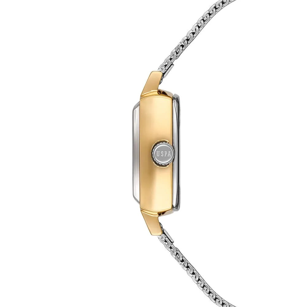 Женские наручные часы U.S. Polo Assn. Stile USPA2066-06 — это стильный и лаконичный аксессуар, выполненный в форме квадрата. Модель изготовлена из стали с PVD-покрытиемPVDУльтратонкое покрытие наносится в технике вакуумного напыления, сочетает в себе нитрид титана особой прочности со слоем золота или оксида хрома. Несёт в себе декоративную или защитную функцию., придающий благородный внешний вид и устойчивость к царапинам. Циферблат дополнен секундной стрелкой, обеспечивающей точность отсчёта времени. Защиту циферблата обеспечивает минеральное стеклоМинеральное стеклоМинеральное стекло представляет собой искусственно выращенный минерал кварца. Такое стекло отличается особой устойчивостью к повреждениям и царапинам. Уступает по некоторым качествам сапфировому стеклу., устойчивое к мелким повреждениям. Часы оснащены кварцевым механизмом, гарантирующим точность и минимальное обслуживание. Водонепроницаемость 3 АТМ позволяет использовать часы в повседневных условиях — при мытье рук или под лёгким дождём. Браслет выполнен в технике миланской сетки из стали и оснащён раскладным замкомРаскладной замокДанный вариант застежки используется только на часах с металлическим браслетом. Отличительная особенность такого крепления в том, что длина браслета становится универсальной и вы можете самостоятельно отрегулировать нужный вам размер – застежка просто двигается по браслету часов., обеспечивающей комфорт и уверенную фиксацию на запястье. Толщина корпуса составляет 10 мм, а его размер 26 мм, что делает часы компактными и удобными в носке. Эти часы станут универсальным аксессуаром для уверенных в себе женщин, которые ценят сочетание стиля, качества и эстетики — идеальный выбор для повседневного образа и торжественных случаев.