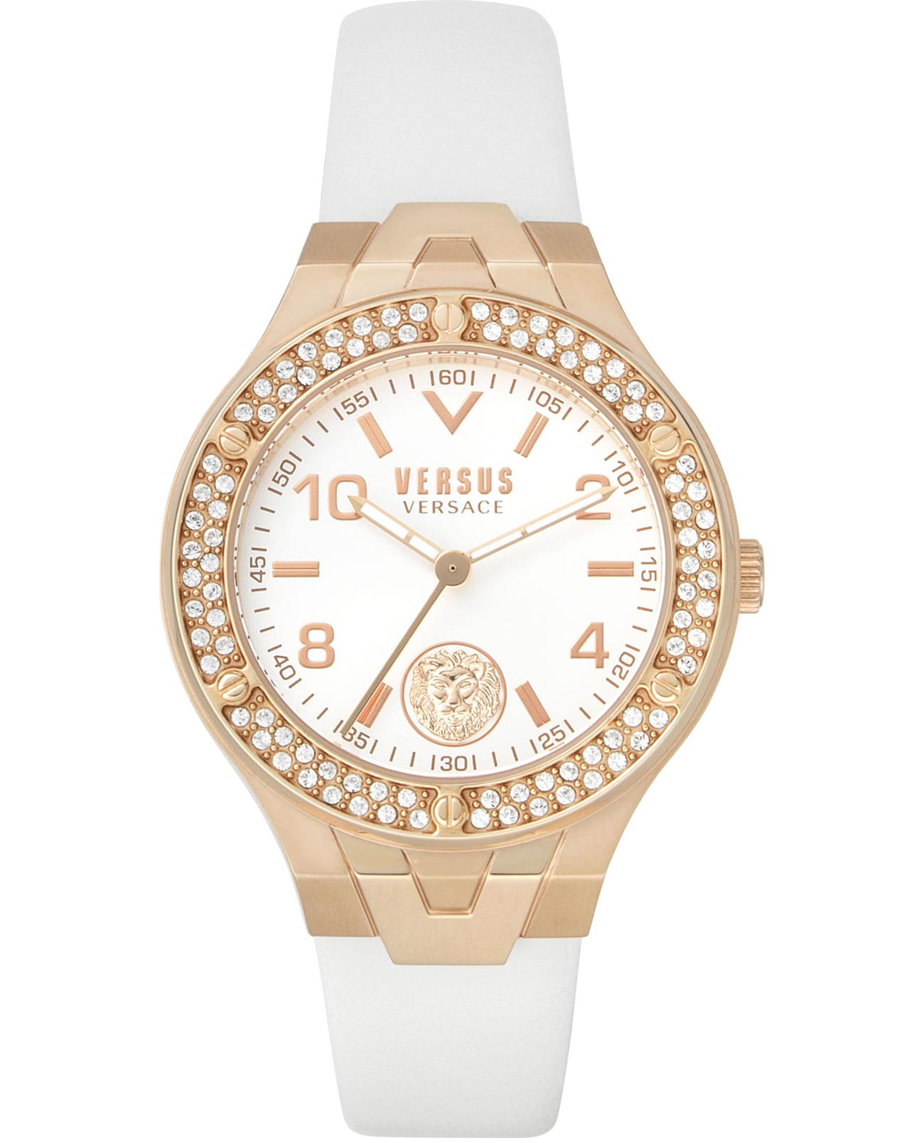 Бесподобные женственные часы окутают вас ювелирной роскошью, доведя образ до совершенства. Стильные часы Vittoria с круглым стальным корпусом дополненным планками V-образной формы. Безель инкрустирован кристаллами Сваровски. Циферблат украшен 3d лого в форме головы льва. Часовые метки в виде арабских цифр и штрихов. Кожаный ремешок с классической застежкой.