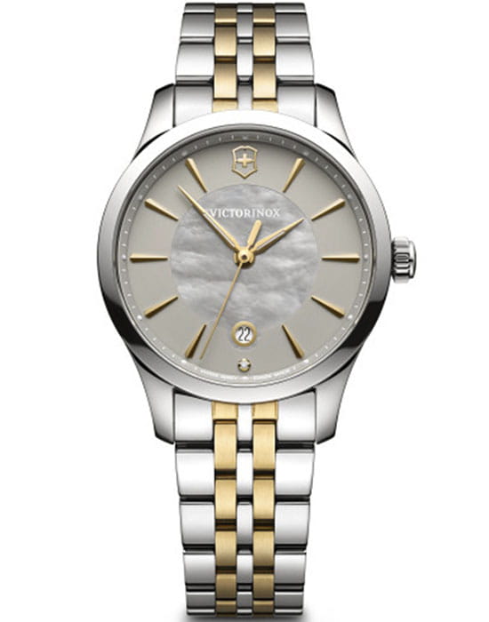 Женские швейцарские часы с сапфировым стеклом и бриллиантом Victorinox 241753, кварцевый механизм с высокой точностью. Сапфировое стекло устойчивое к появлению царапин, обладающее высокой прозрачностью. Класс водозащиты: 100 метров, позволит плавать, нырять и заниматься другими водными видами спорта. Корпус часов изготовлен из стали, цвета.