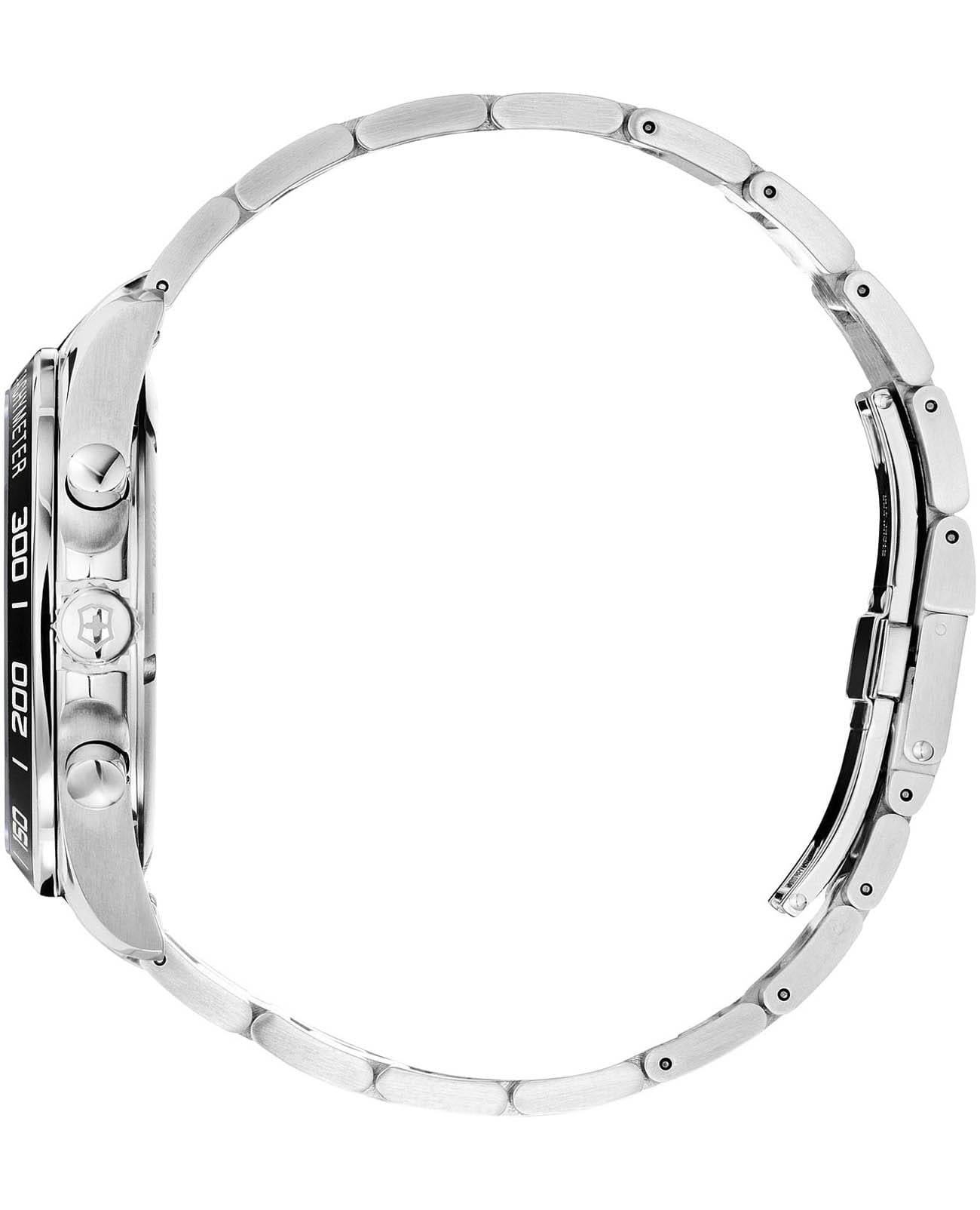 Мужские швейцарские часы-хронографХронографФункция позволяет измерять отрезки времени с особой точностью: часы, минуты, секунды. Верным признаком хронографа является наличие на циферблате 3 дополнительных окошек-счётчиков. Victorinox Fieldforce Chronograph 241899 с надёжным кварцевым механизмом. Сапфировое стеклоСапфировое стеклоПрочный и надёжный материал из кристалла сапфира синтетического происхождения, характеризующийся особой твёрдостью и устойчивостью к царапинам и повреждениям. с трёхслойным антибликовым покрытием. Корпус часов выполнен из нержавеющей стали 316L. Стальной браслет на раскладной застёжкеРаскладная застёжкаТакой тип застёжки используется только на браслетах из металла. Она никогда не раскрывается полностью, происходит разделение на 2 и более частей. Раскладывающая застёжка снизит вероятность потери часов к минимуму.. Влагозащита: 100 метров, позволит плавать, нырять и заниматься другими водными видами спорта. Окошко даты находится в положении 6 часов, стрелки и метки с люминесцентным покрытиемЛюминесцентное покрытиеПозволяет считывать показания времени в темноте. Производители наносят на стрелки, часовые индексы, безель или поверхность циферблата светонакопительный состав, дающий холодное свечение., тахиметрТахиметрРазмеченная шкала, располагается на ободке или безеле часов. Тахиметр позволяет рассчитать скорость на определённом участке пути, расстояние измеряется в километрах или милях..